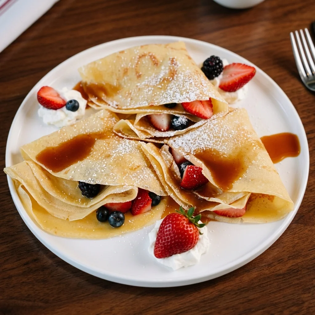 Savoury pancakes made with fresh spinach, smoked salmon, Grana Padano cheese, and parsley oil. A visually stunning and fan-favourite dish at SOHO Kitchen + Wine.